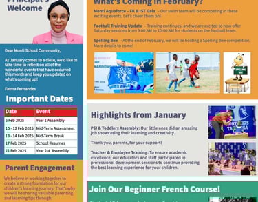 Stay informed with our comprehensive monthly newsletters showcasing classroom achievements, upcoming events, and educational insights tailored to your child's grade.